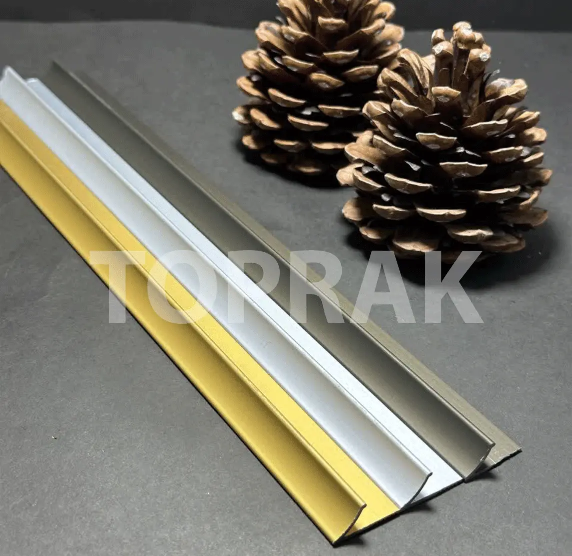 At Toprak Steel, aluminum corner profiles are produced with high precision, a smooth finish, and a variety of colors (silver, gold, black, and champagne) to match any interior style.